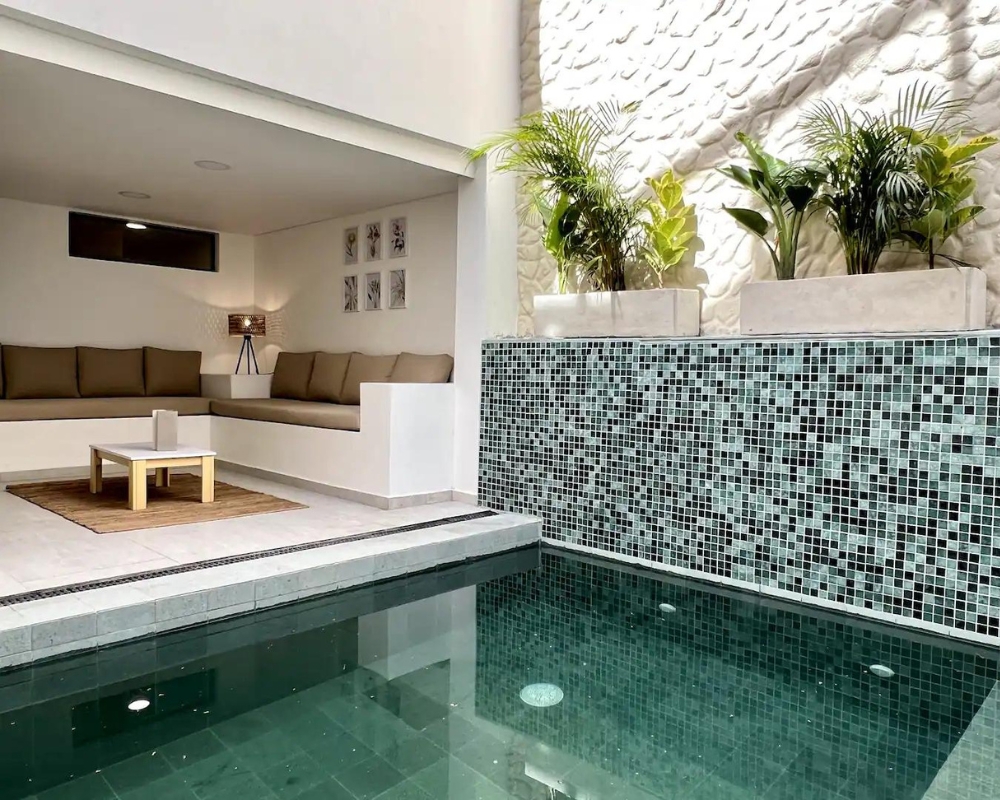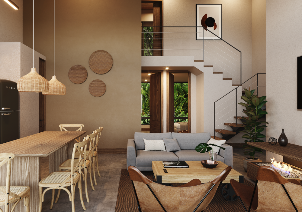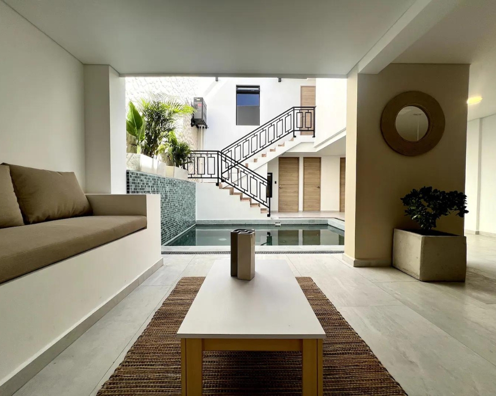 Inspirada en la arquitectura balinesa. Este alojamiento de más de 200 mts en Medellín se caracteriza por sus espacios integrados, iluminados y acogedores. Logramos crear ambientes íntimos y relajados.