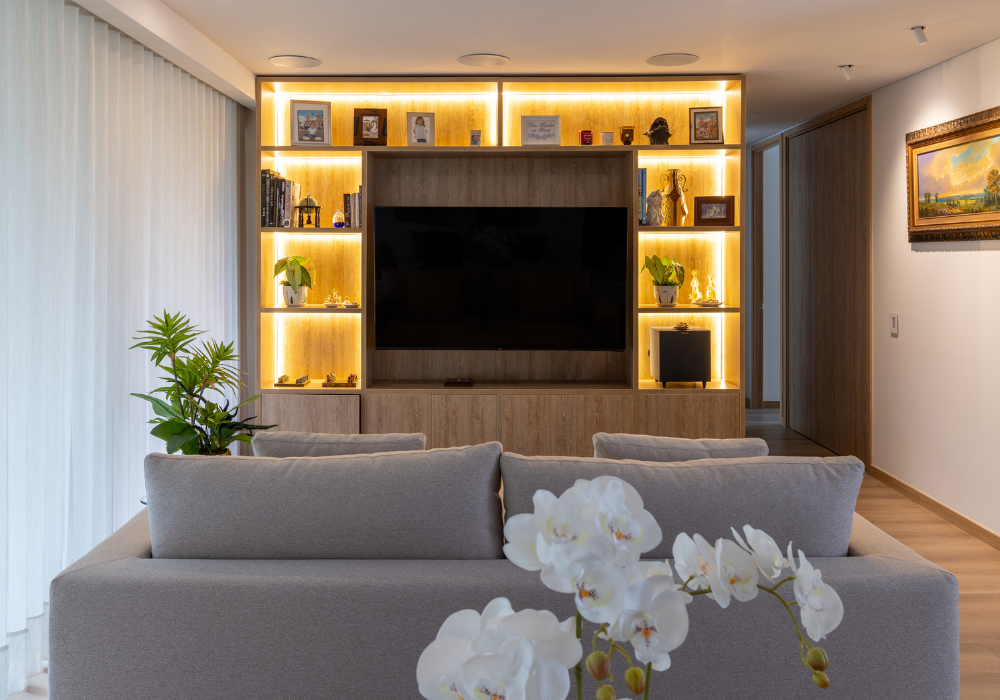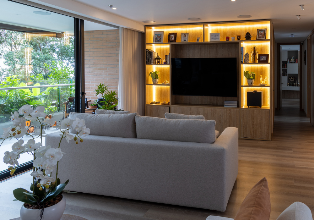 En este proyecto realizamos el diseño interior y la ejecución de este apartamento de 170m2 en Medellín, donde diseñamos y fabricamos mobiliario a medida para comedor, sala, sala de entretenimiento, balcón, oficina y habitaciones.