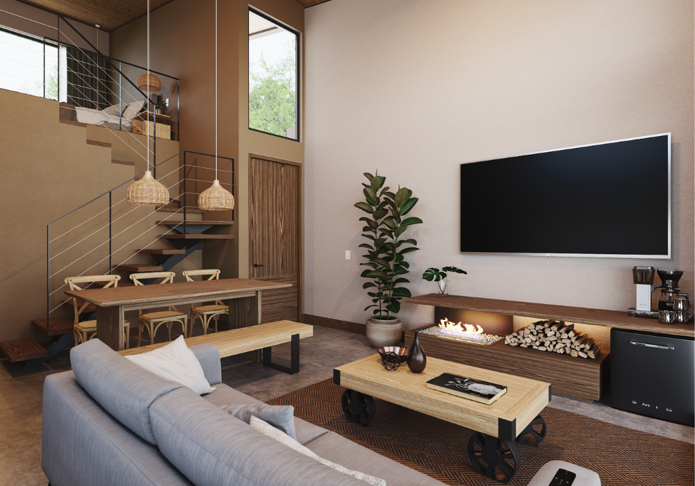 Diseño interior y renderización de un Proyecto hotelero en Antioquia. Con un estilo rústico-moderno, en donde son protagonistas la naturaleza, el silencio y los detalles.